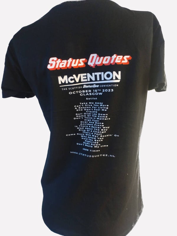 Last few girlies of the special edition Status Quotes live at McVention 2023, with the full set printed on the back.